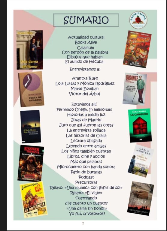También hemos entrevistado a Mayte Esteban, pero no porque tenga una nueva novela sino por el curioso fenómeno que ha protagonizado. Comenzó en noviembre un divertido desafío literario: leer las primeras frases de una novela e invitar a adivinar su título. La premisa siempre es la misma ¿Sabes qué libro es? Pues esto se ha convertido en un fenómeno en redes sociales que está traspasando fronteras.El resto del sumario, muy completo, desde las reseñas de La canguro, Sin indicios criminales, Cat Ninja, Un libro, El viñedo de la luna y Stranger Things, de la obra de teatro Gigante y de la película Sorda, pasando por nuestra opinión sobre la ceremonia de Los Goya, una emotiva reseña del gran Fernando Ónega, la explicación de por qué motivo se celebra el día 23 el Día del Libro o la vida y obra de la gran Gloria Fuertes.