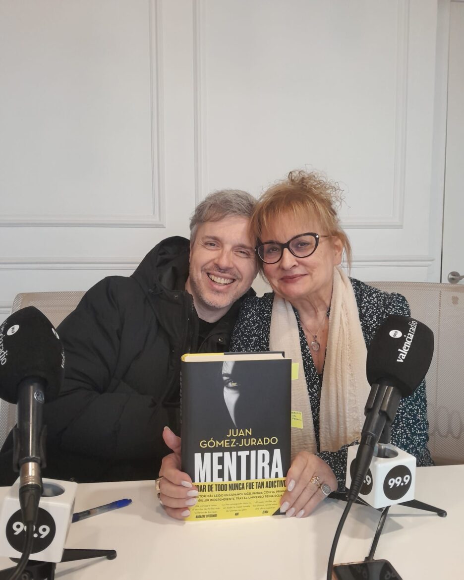 Hemos empezado cantando y contando mentiras “trailará”: tarareando la canción infanil, “Vamos a contar mentiras”, y leyendo como si fuera propio un fragmento de la hermosa reseña de “Mentira” que César González Antón ha publicado en “Ahora qué leo”. De inmediato descubrimos la mentira hablamos con nuestro invitado de González Antón, director de informativos y programas de actualidad de la Sexta, y de sus bellas palabras entre ellas dice que la novela “Es Hammett y es Chandler y es Agatha Christie, pasando por Steinbeck”. Gómez Jurado dice que se siente incómodo ante esas críticas tan favorables y vuelve a salir su ya recurrente síndrome del impostor pese… Nos ha hablado de los orígenes de esta novela que ha escrito pese a la oposición de “todos”, editorial, libreros, el público, Amazon Prime… “querían que siguiera con Reina Roja, pero no podía: (…) Ha sido un proceso largo y arduo que comenzó cuando falleció la madrina de mis hijos en la misma semana en la que lanzábamos «Todo arde». Ella se llamaba Eva Ramos así y era un ser humano maravilloso al que le debo muchas cosas, entre otras cosas, la vida, porque me la salvó una vez. Ahí fue cuando empezó a gestarse en mi cabeza la idea de que tenía que escribir una historia con un personaje muy poderoso que de alguna forma fijase su nombre para siempre(…) Mentira es autoconclusiva, e independiente y no tendrá continuación. Fue un pacto personal con el marido de mi amiga (…) No va a haber continuidad porque ella era única e irrepetible».