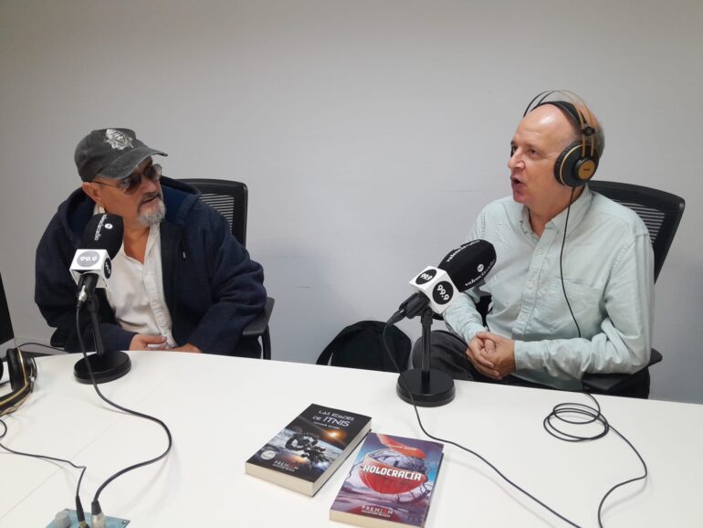 Juan Miguel Aguilera, diseñador industrial, ilustrador, escritor y divulgador científico, en su espacio Micromegas la Tertulia de Pegando la Hebra, recibe a amigos suyos con los que conversa amplio y tendido. Hoy su invitado ha sido Salvador Bayarri, doctor en Física, Licenciado en Filosofía, divulgador científico, didacta y escritor de novelas y relatos de ciencia ficción,